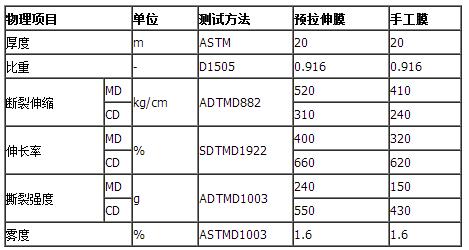 纏繞拉伸膜技術參數(shù)